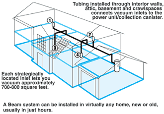 Unique Installation Inc.'s central vacuum systems uses tubing installed in the walls of your home to carry dirt, dust and allergies away from living areas to a collection canister in the garage or basement. The flexible tube you plug into a special inlet, lets you move from room to room for fast, easy whole-house cleaning convenience.